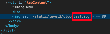 코드를 잘 보면 img 태그에서 실제 이미지 위치를 의미하는 src속성의 맨 마지막에 제가 입력한 "test"가 포함되어 있음을 확인 할 수 있습니다.