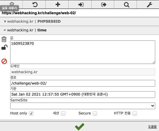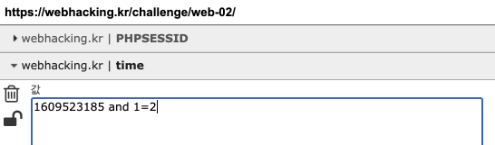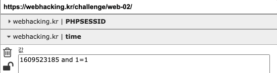 그러던 중, 쿠키를 보니 time이라는 값에 unix timestamp가 설정되어있음을 확인할 수 있었다.
