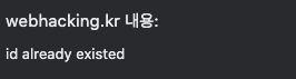 우선 admin이라는 계정의 pw를 모르기 때문에, 다시 join.php로 돌아가서, admin으로 가입을 시도해보기로 했다.