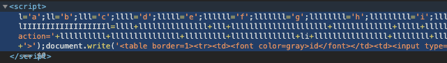 document.write('<table border=1><tr><td><font color=gray>id</font></td><td><input type=text name=' + lllllllll + llll + ' maxlength=20></td></tr>');