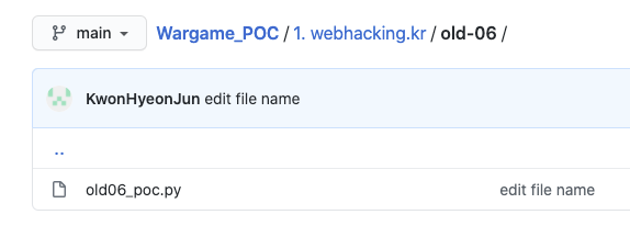 Github 주소 : github.com/KwonHyeonJun/Wargame_POC/tree/main/1.%20webhacking.kr/old-06