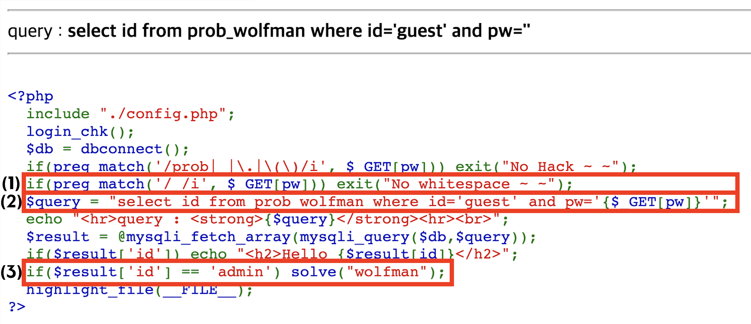 - 실행시킬 쿼리의 where 구문 내 id컬럼이 'guest'로 고정되어 있고, 파라미터는 pw만 받는다.