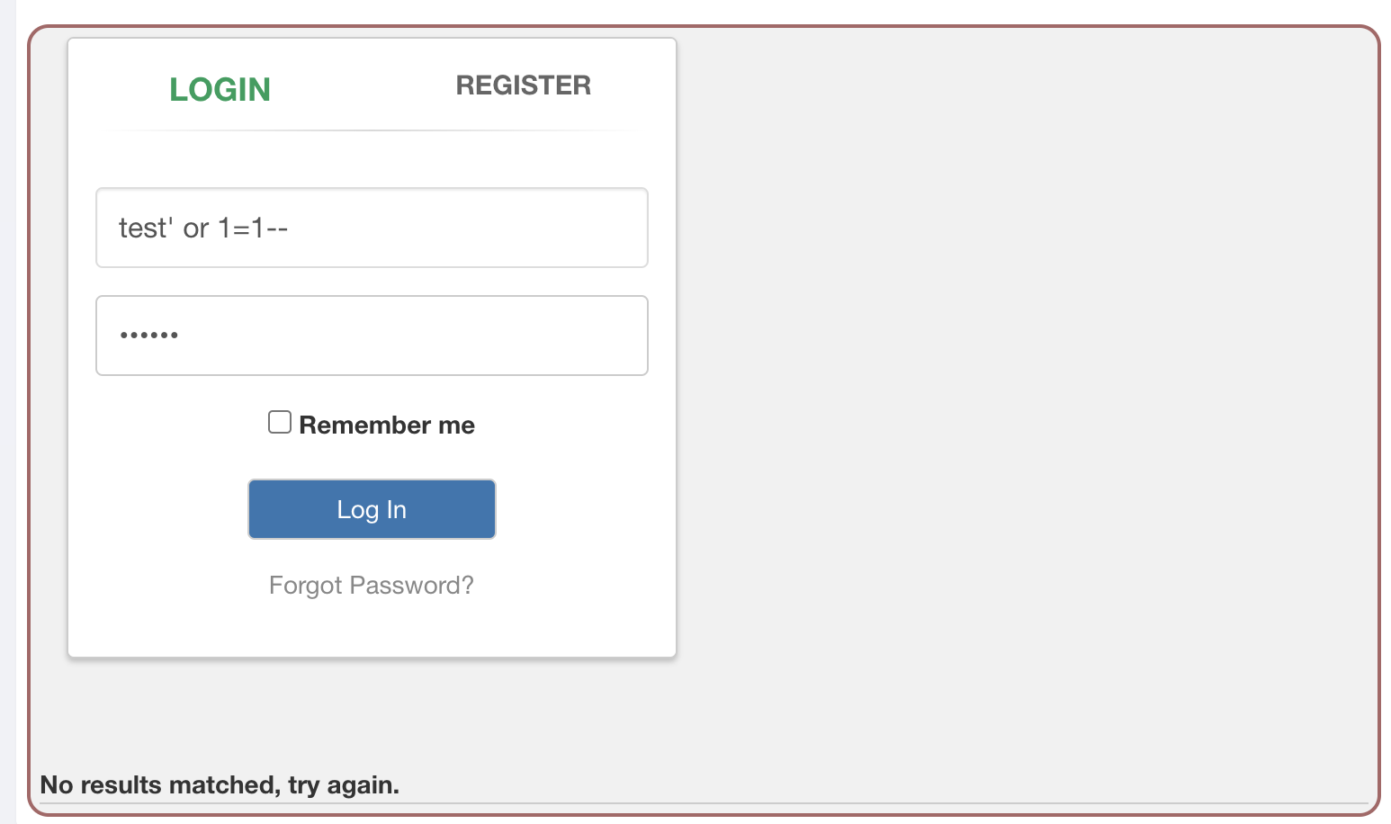 공격을 시도해본 결과 Login 쪽은 방어로직이 있음을 확인할 수 있다.