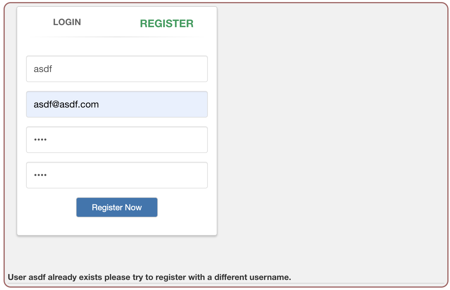 답은 ID 중복체크에 있다. 이미 가입한 아이디로 한번더 가입을 시도해보자.