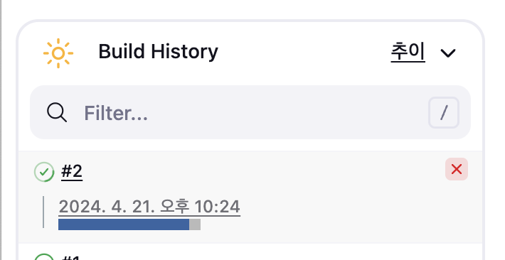 아마 좌측 하단 Build History를 보면 아래 그림처럼 자동으로 빌드가 이루어지고 있을것이다.