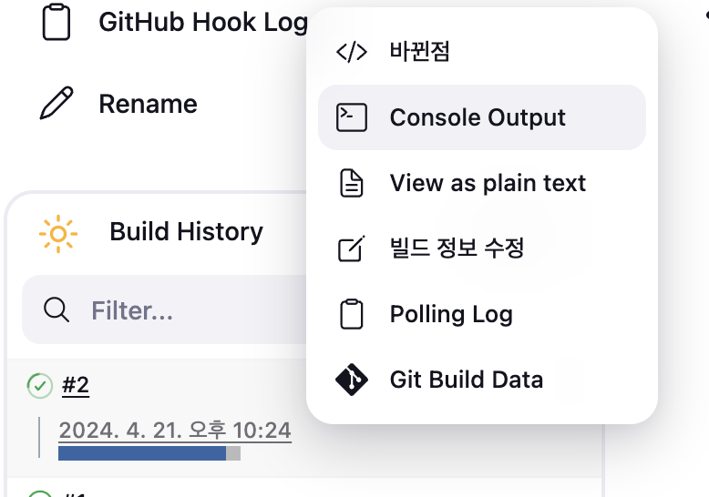 해당 Build 과정에 대하여 Console Output을 확인해보자.