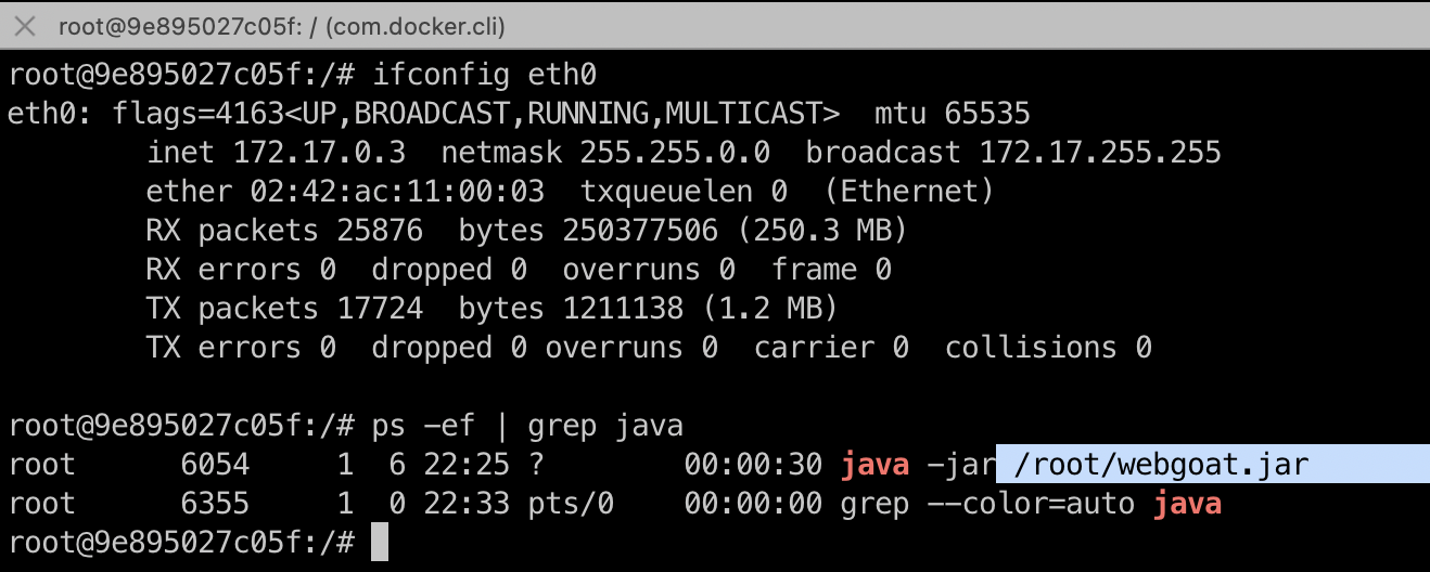 아래 그림처럼 'java -jar /root/webgoat.jar'가 잘 실행되고 있음을 확인할 수 있을것이다.