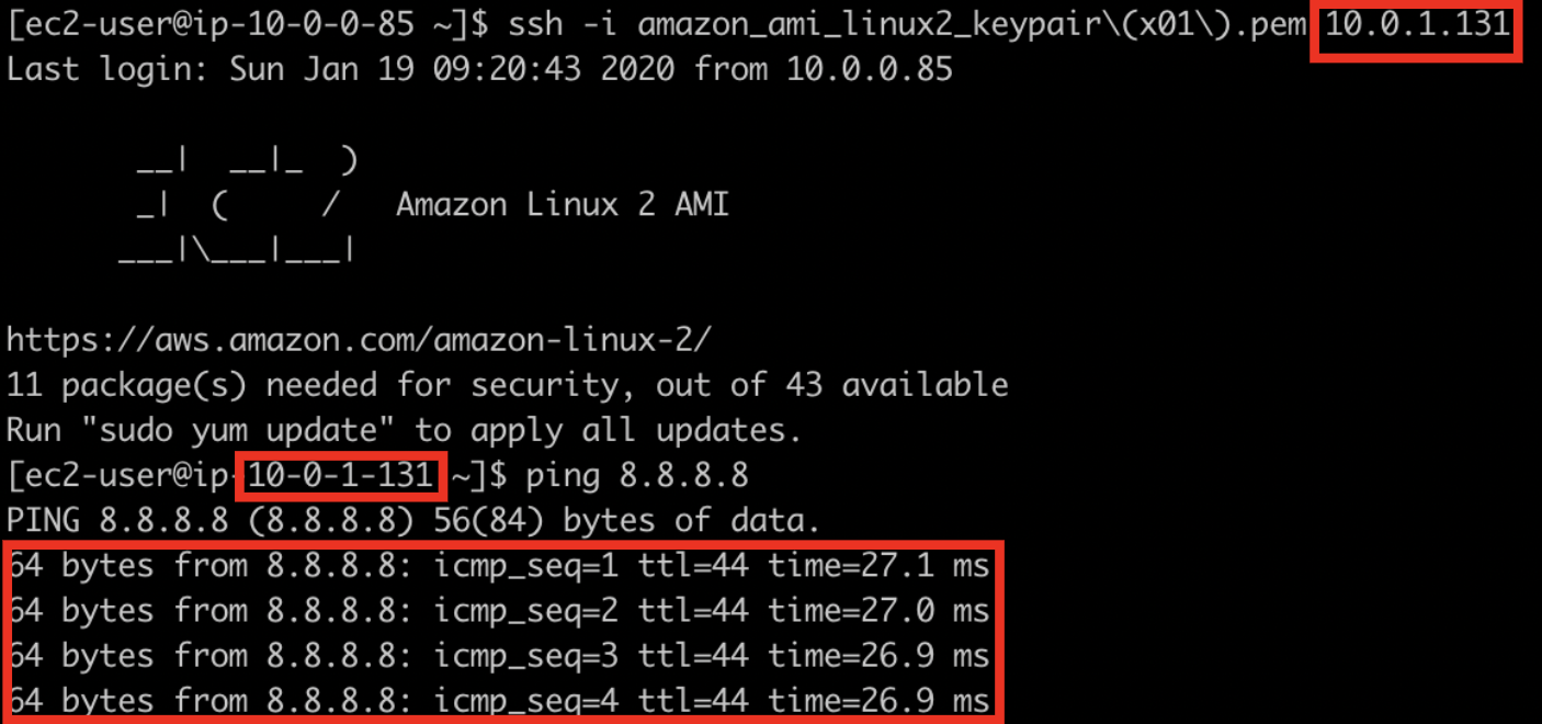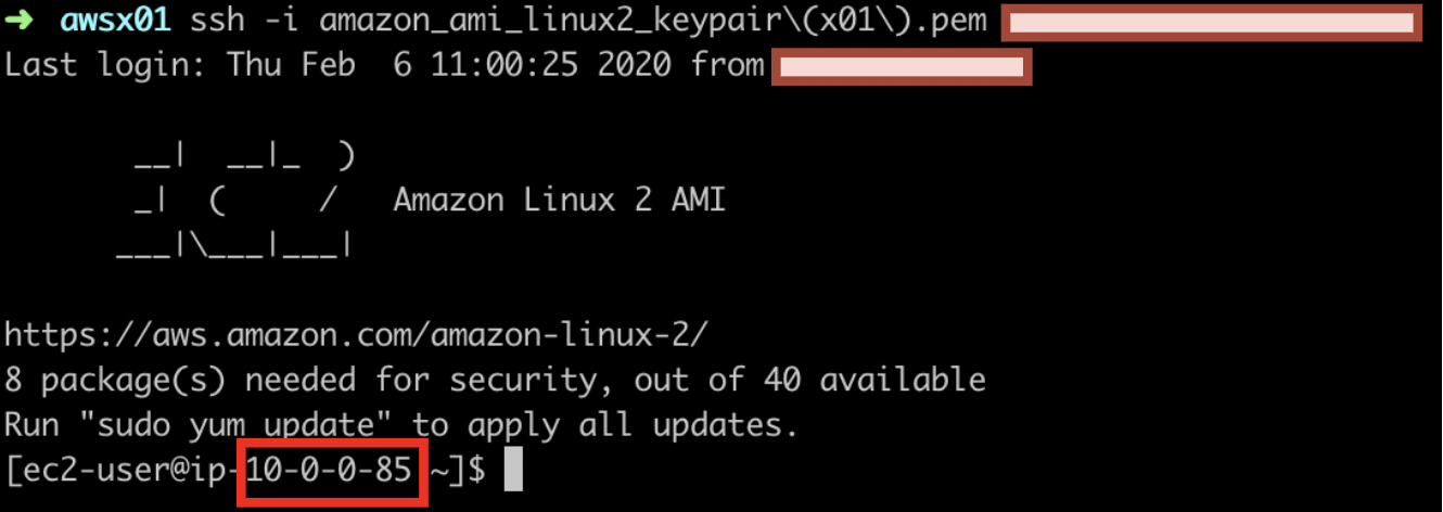 접속한 Terminal 서버의 IP를 보니 10.0.0.85 우리가 설정한 Public Subnet의 대역안에 있음을 확인할 수 있다.